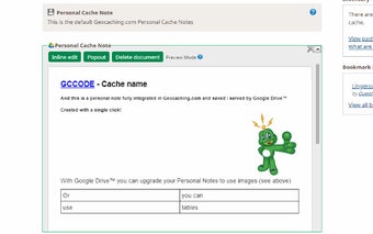 With Geocaching.com Google Drive™ Notes, users can create advanced notes for puzzles and multies directly from the Geocache page on geocaching.com. The extension allows for the creation of styled long text, tables, and images, similar to Office documents. These notes can be accessed on the go with an internet connection, or even made available offline using the Google Drive app.